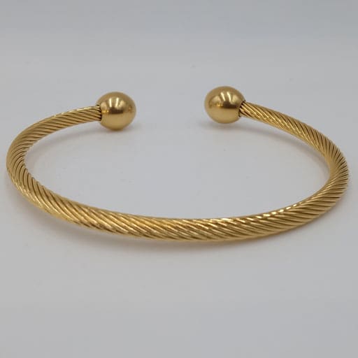 African Twisted Brass Cuff Bracelet/Bangle, Ball Accent